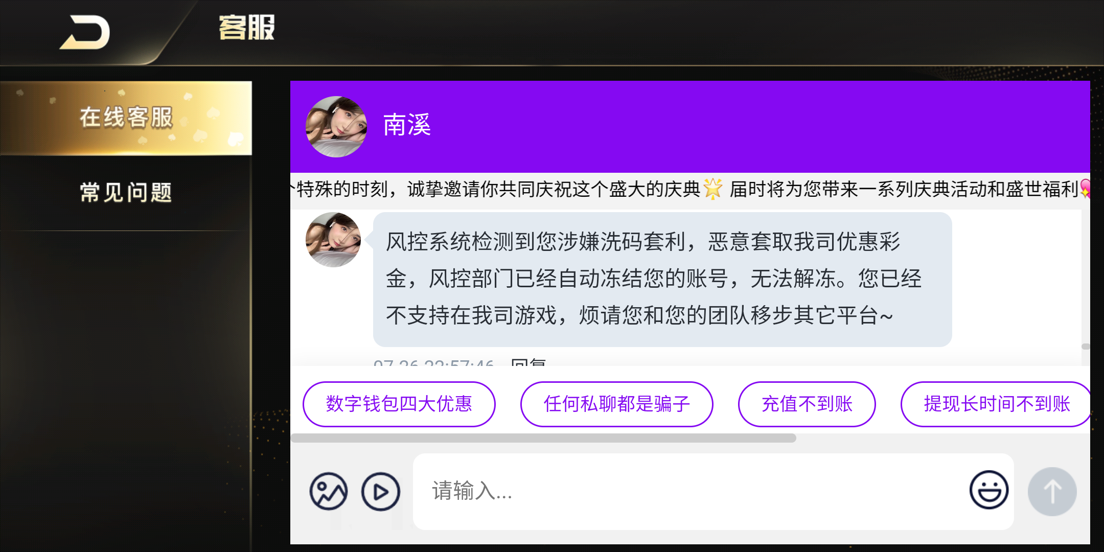 50上500直接封号,还是十年台子逗我吧