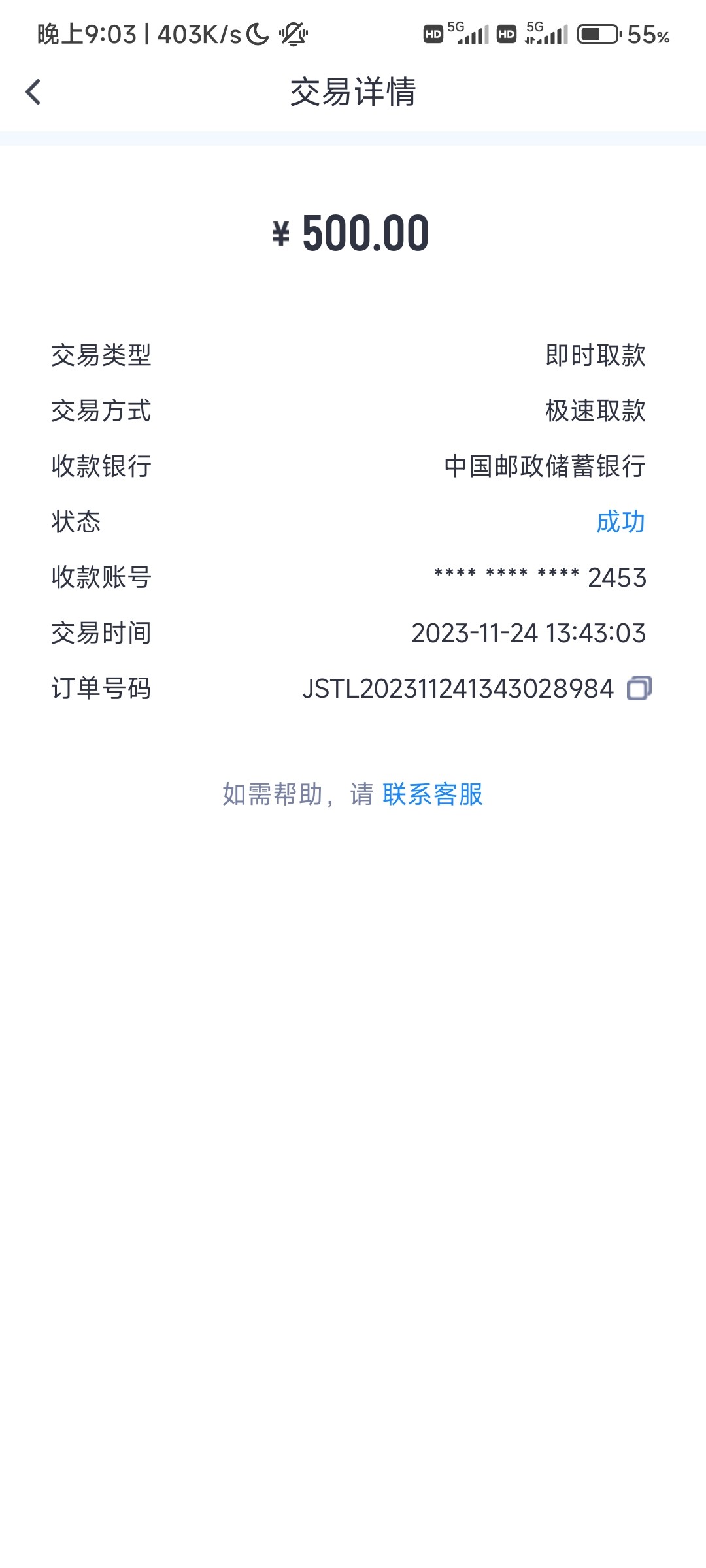 出款金额:   500.00