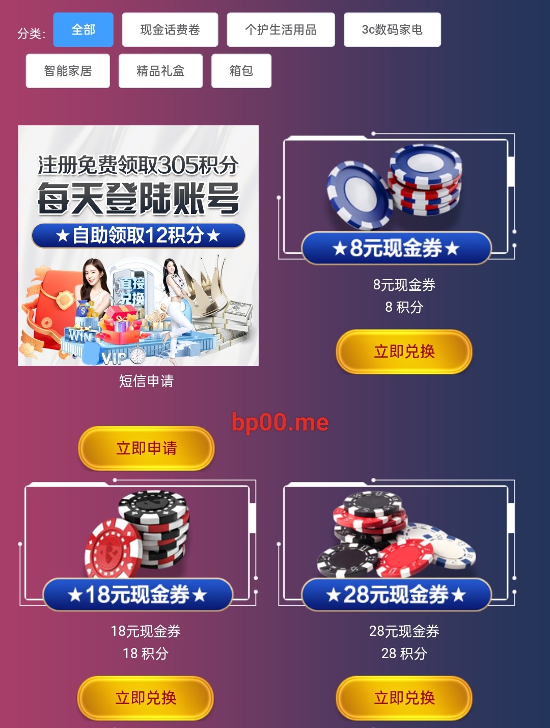 之前发过这个,只不过现在活动改了,之前是送9积分现在改成12积分了,连续送20天每天12积分,积分可以换彩金话费还有其他的自行查看活动内容吧,最低提款:100元