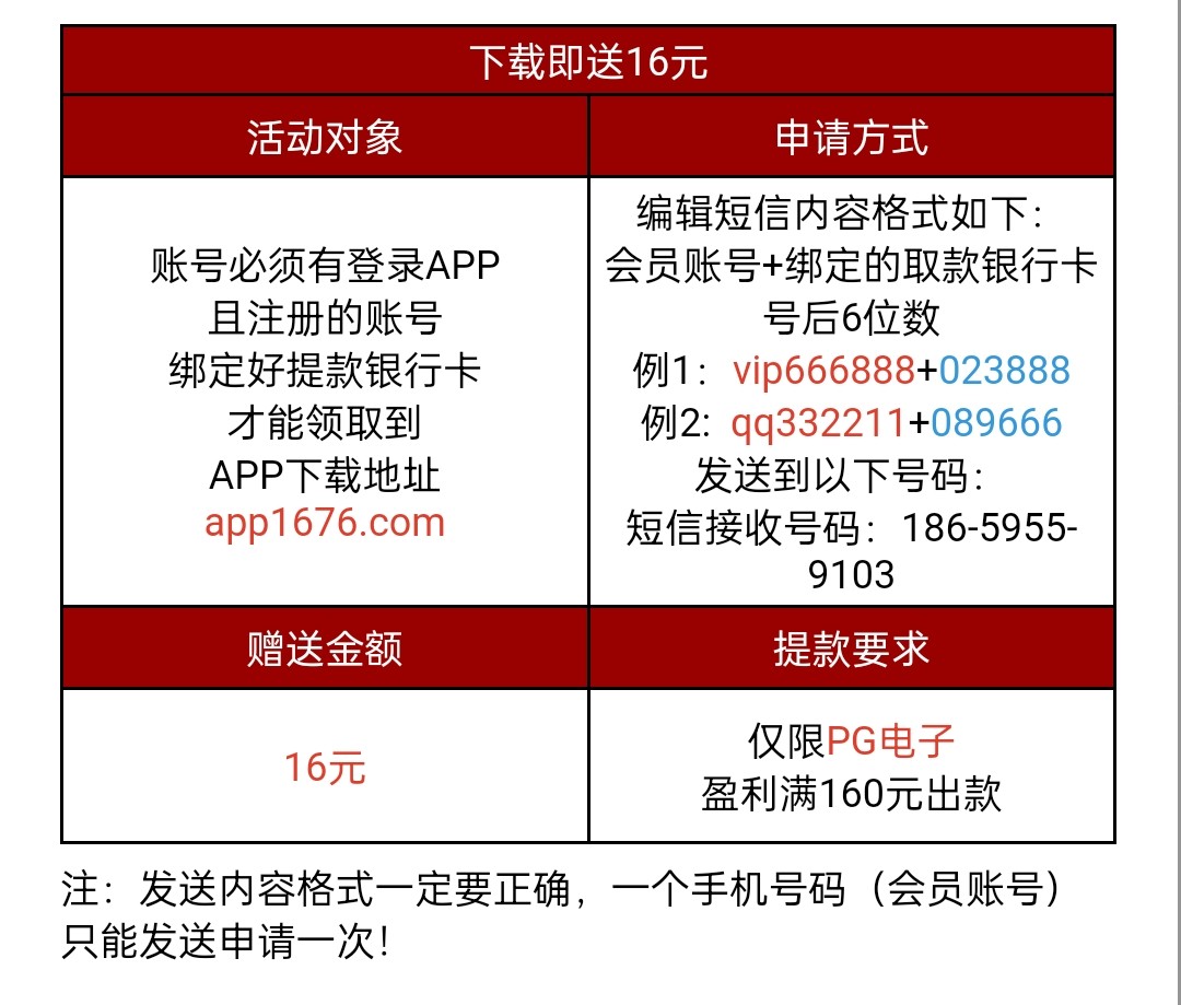 注册下载APP绑定手机号银行卡发短信 限PG电子 最低提款160 具体自行查看优惠