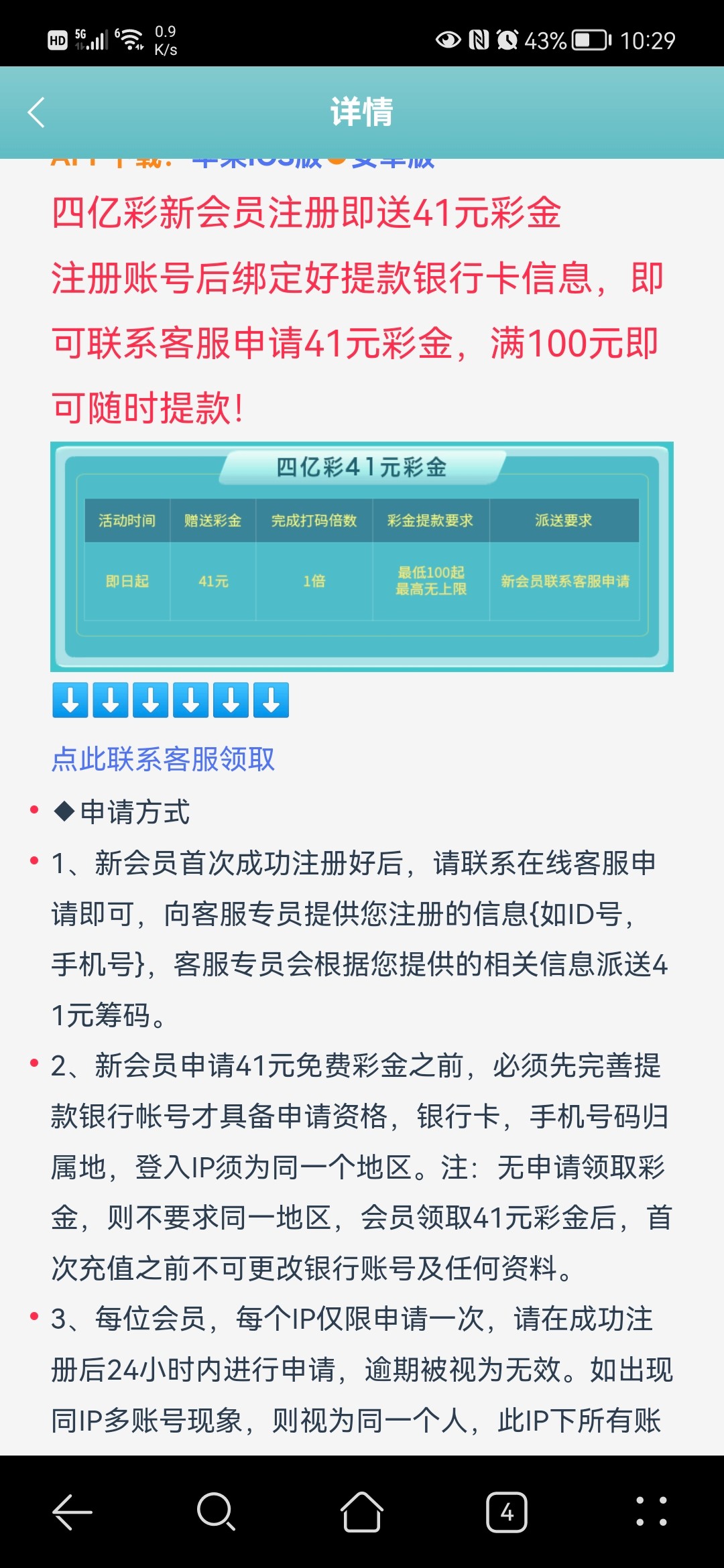 注册绑卡,找客服申请彩金41