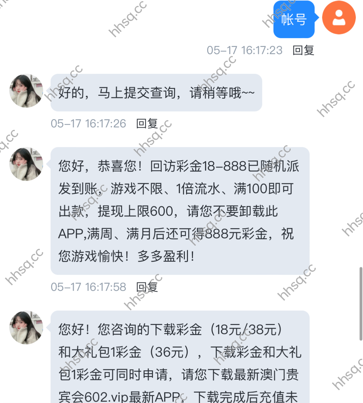 所有撸成功的老表,最后请向客服说明是在“黑黑社区hhsq.cc”看到的