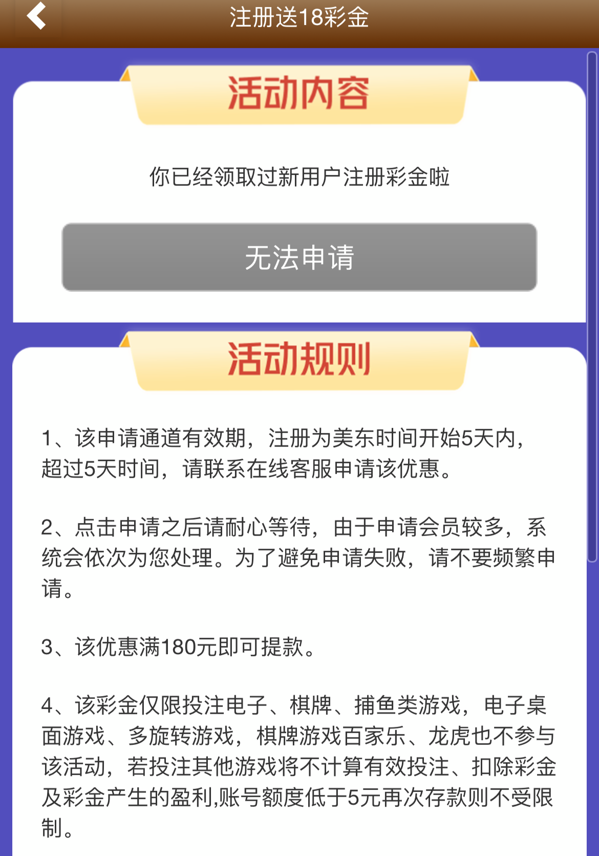 新用户注册完善资料点击【我——注册彩金】发短信秒领18,