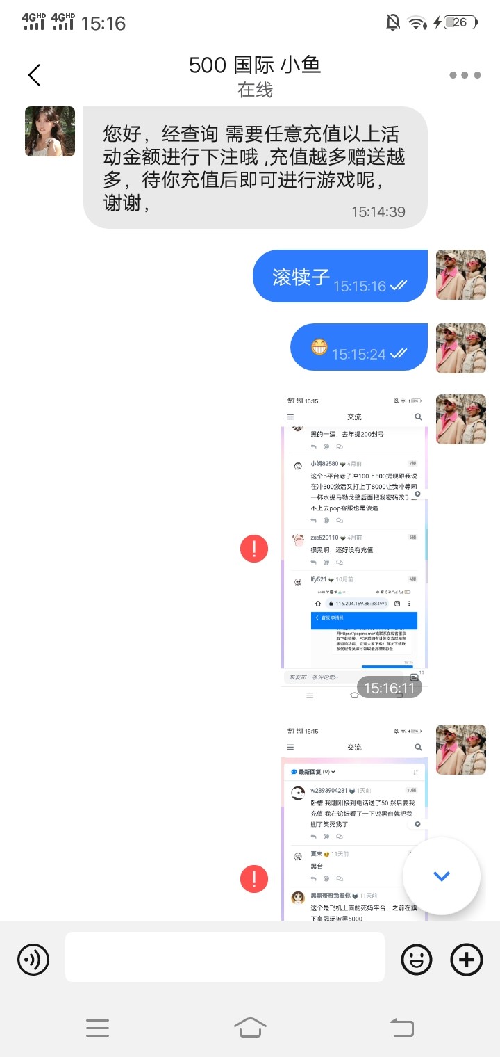 谁有500国际代理发一个 他妈的玩个游戏好不容易上分了 提现了 还退回 说要找代理才能提现 这狗平台这么麻烦 恶心啊!