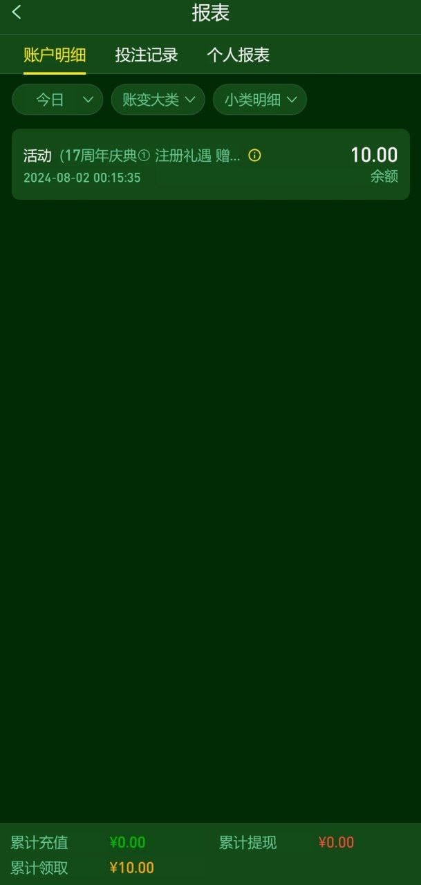 历史注册无充值10元。
