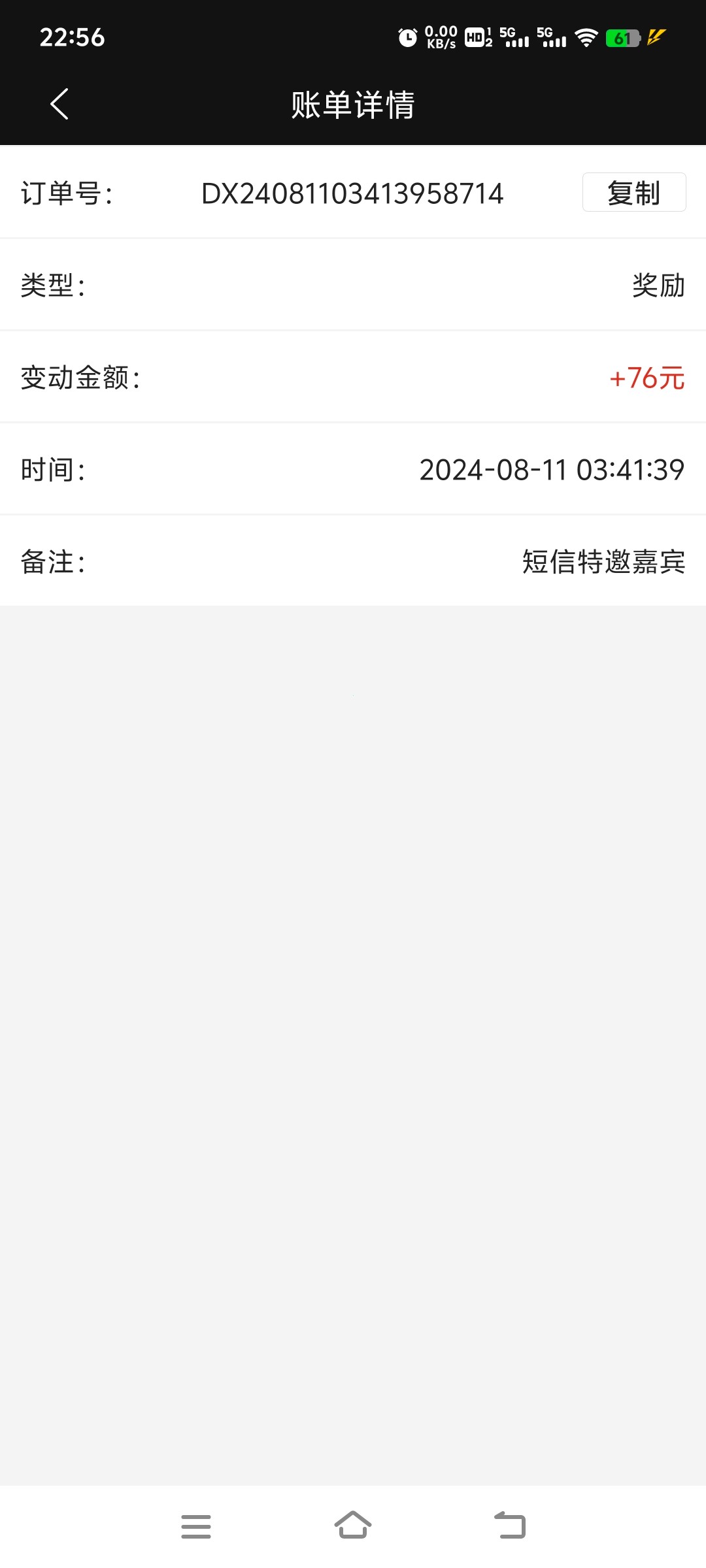 我刚注册的号都送了,特邀的那个76,手机号多的都试试,没必要收到短信,我三个手机号,有两个收到了