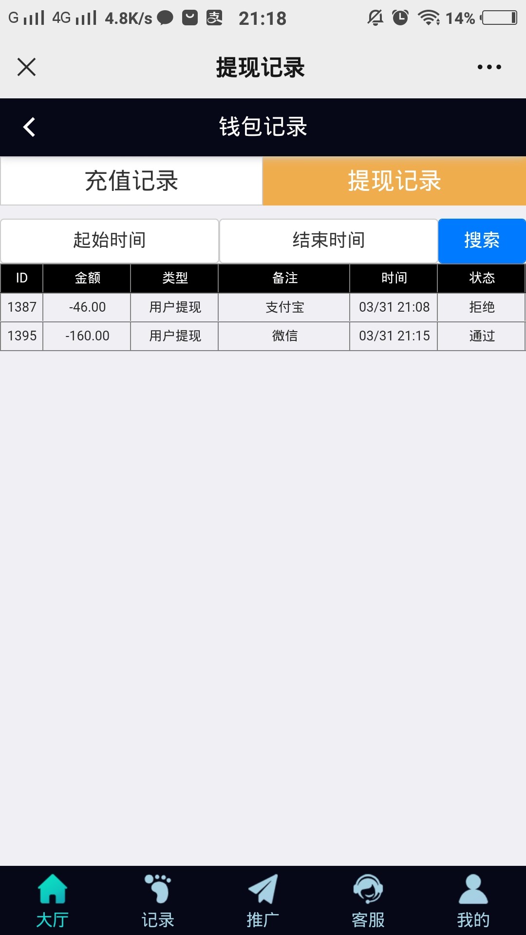 提现通过了直接给客服发收款码和提现记录截图 会到账的 几十块钱不至于黑
