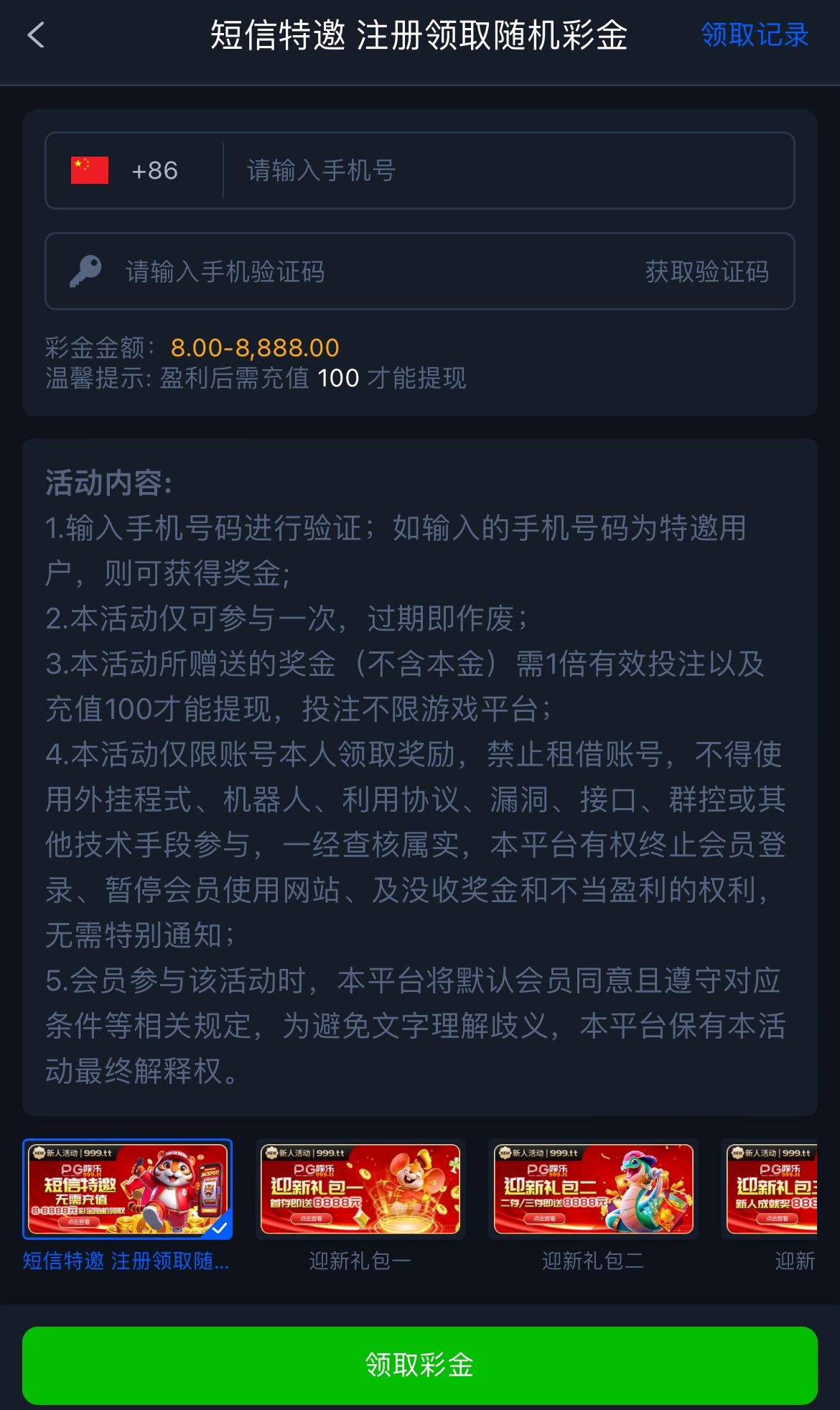 碰瓷特邀彩金,自助领取,彩金一倍流水,提现要充值100自测,被黑只能认栽