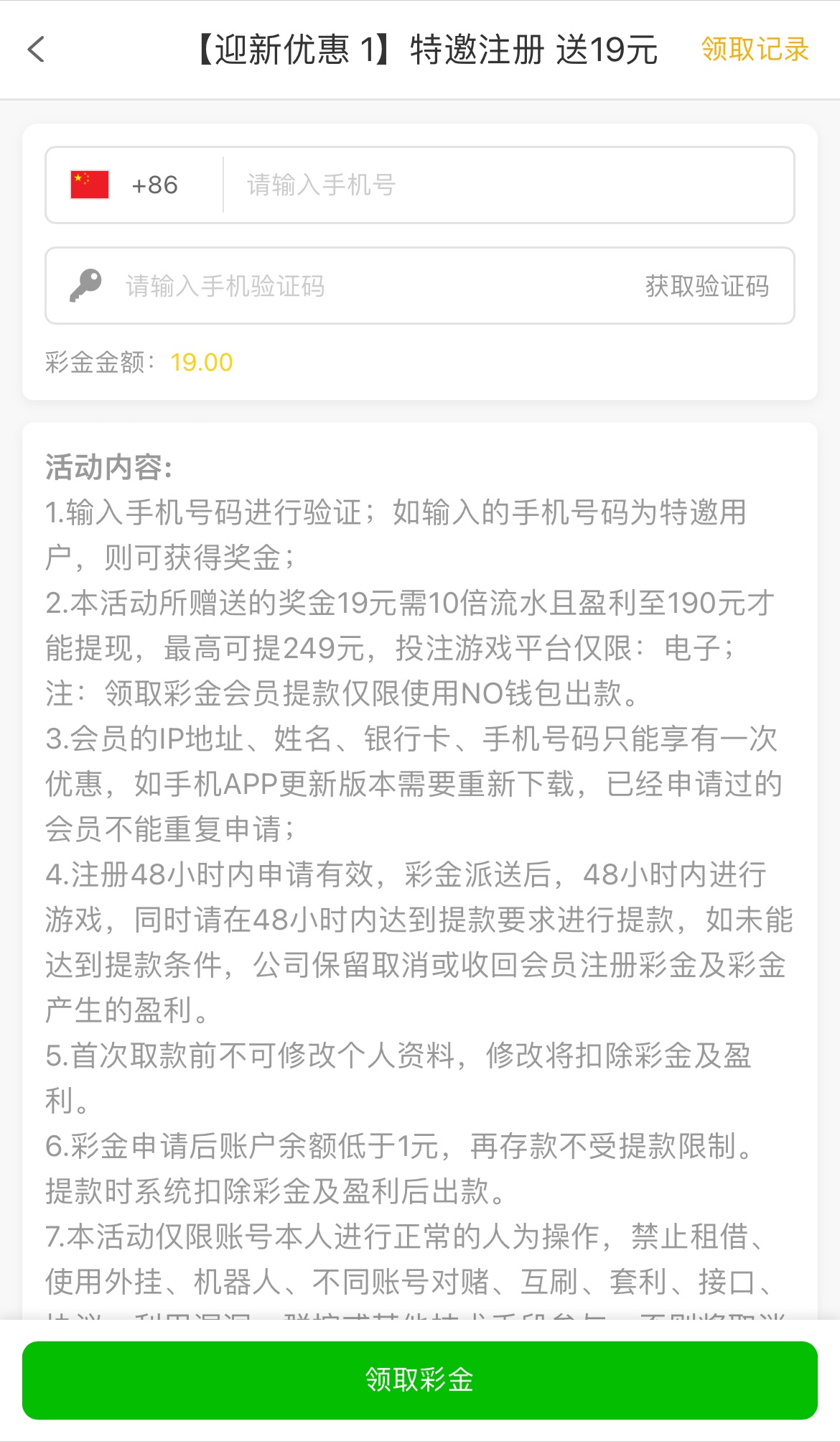 半个月前发过一次之前不是特邀的兄弟现在可以去试试看,彩金10倍流水190提现最高249,只能用NO钱包提现,只能投注电子