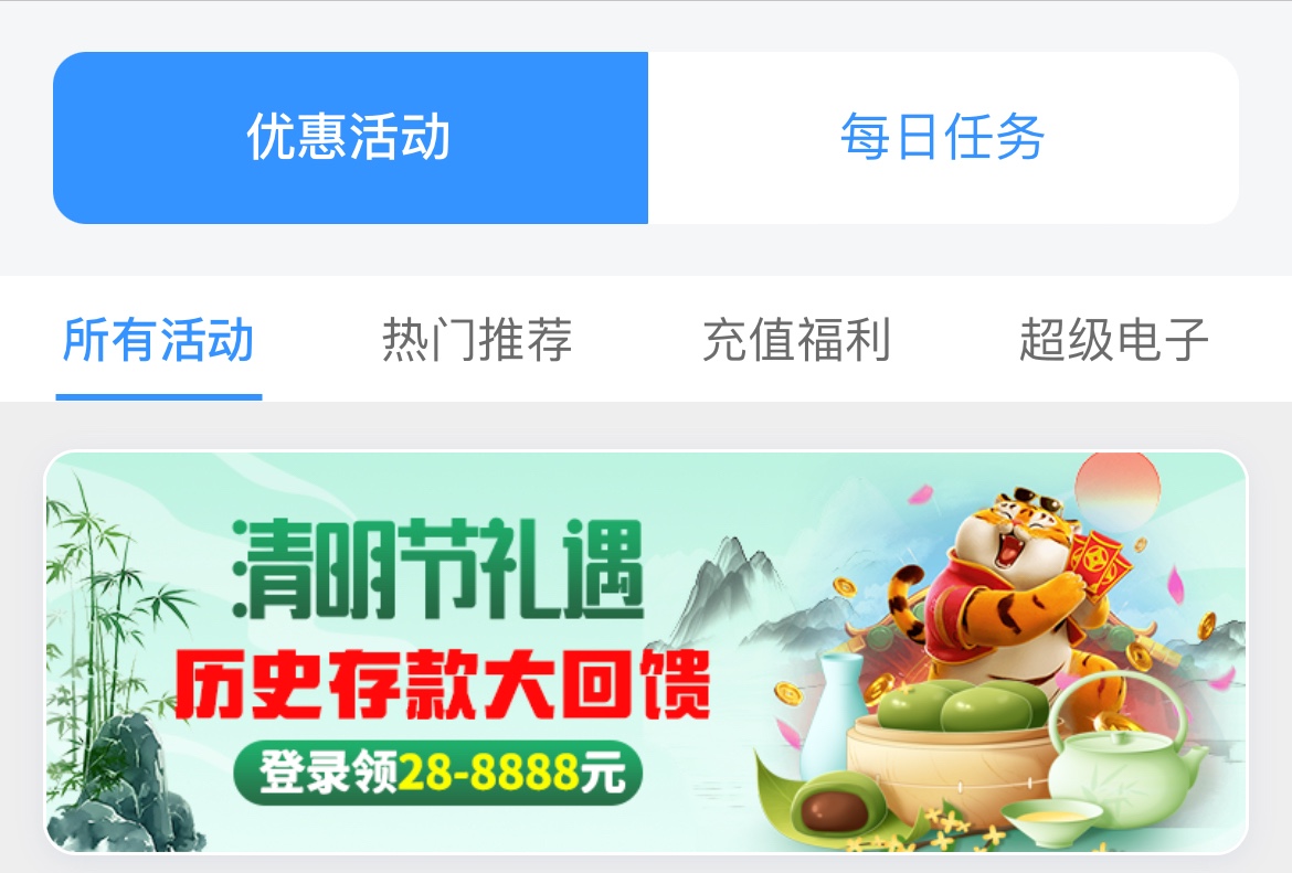 在今年1月1号-4月1号历史累计存款200+存款次数3+,在4月4号清明节当天登入APP领取回馈28,限电子棋牌捕鱼