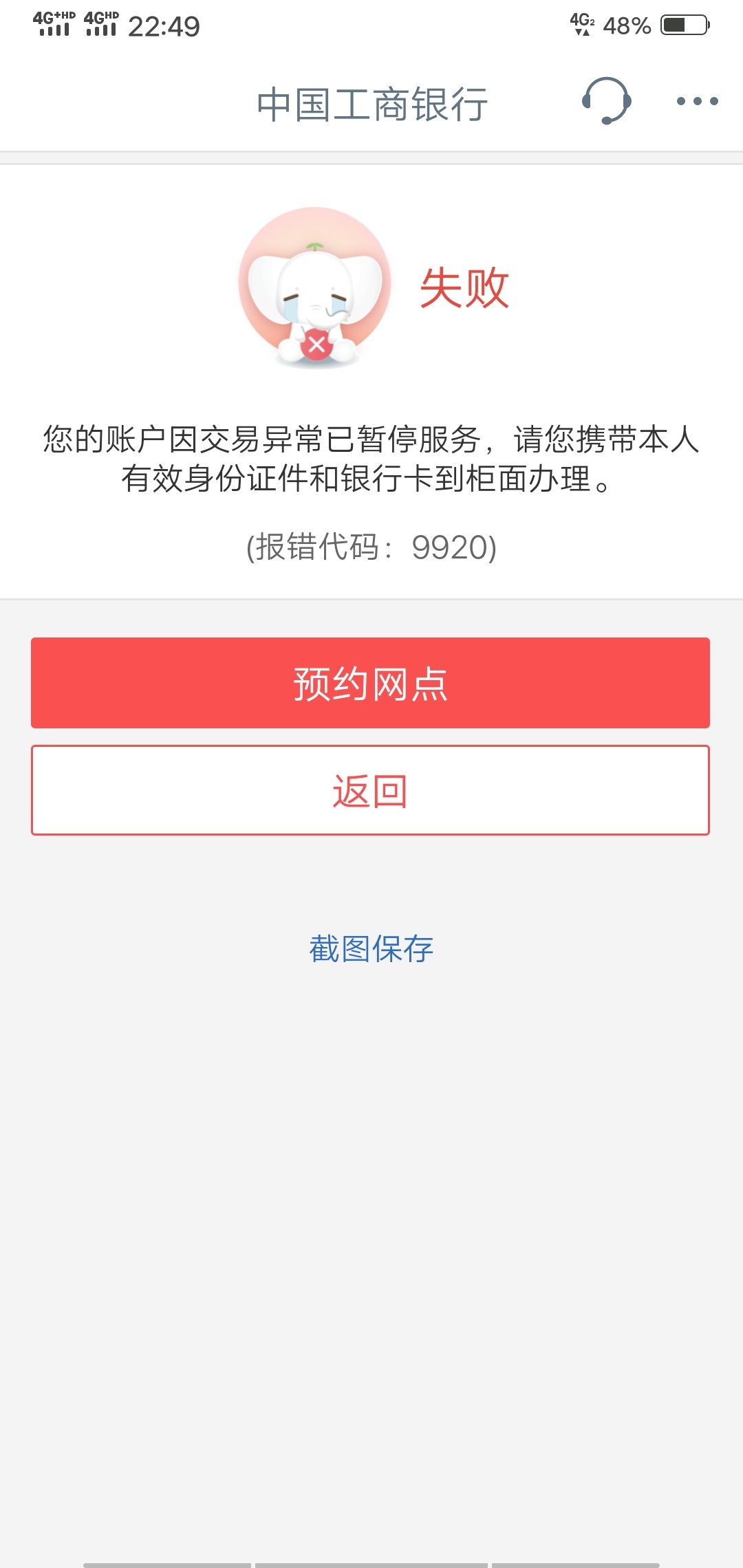 首先大伙注意封卡提示,有的手机银行会直接显示比如工商银行会显示9920(通常都是非柜),下面都有提示,有提示的就按提示来,但是比如建设银行就不会显示,这种就自行检查银行卡状态(用别的银行卡或者别人转账试试)