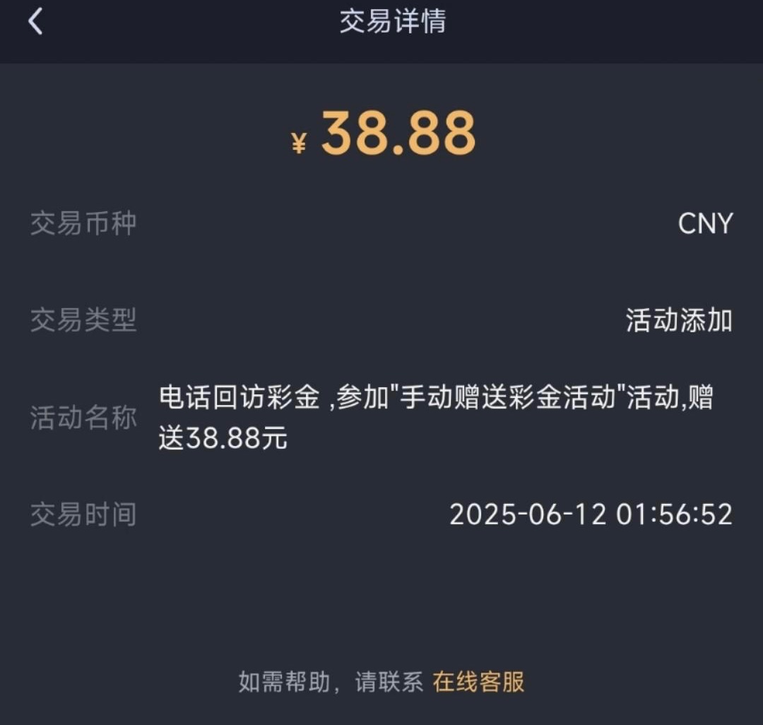 老用户直接发手机号码给客服说领取回访彩金碰瓷就行