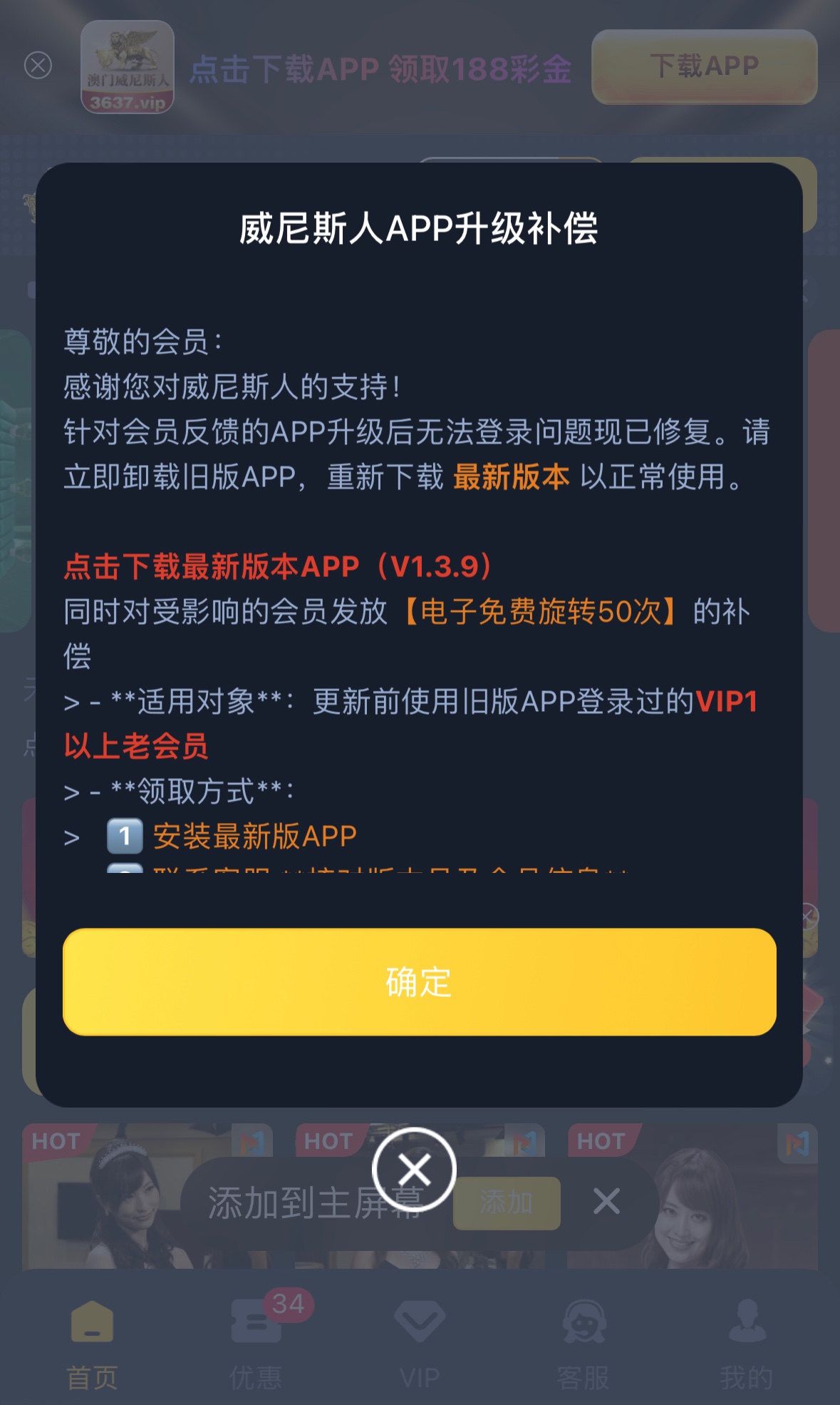 特邀碰瓷,注册完善资料优惠里申请彩金,APP更新前使用APP登入过的VIP1以上的老会员下载新APP联系客服领取补偿50次电子免费转彩金
