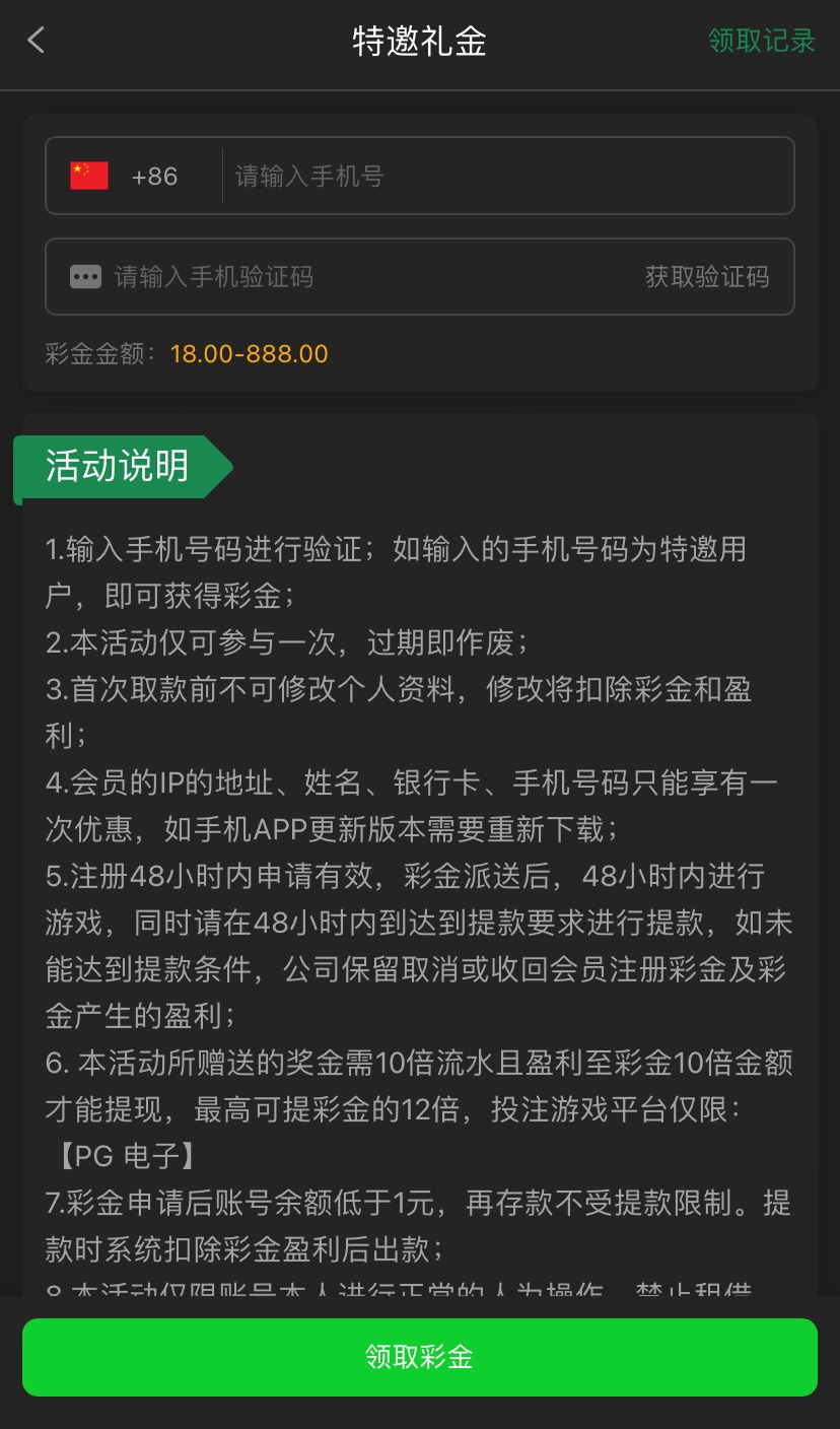 特邀碰瓷,注册好优惠里自助领取,10倍流水
