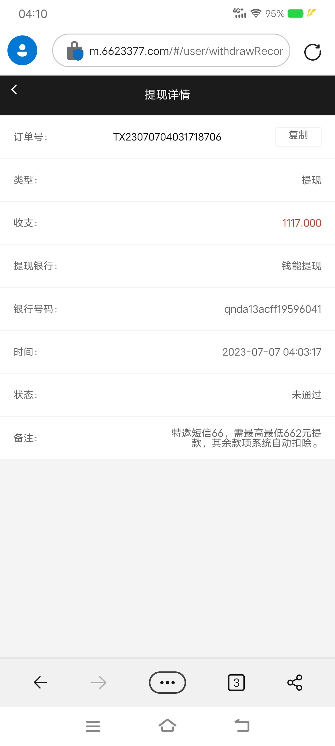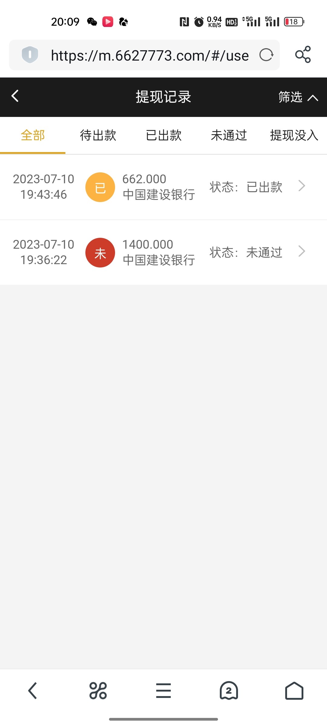 我打出来了,但是提现662显示已出款,钱没到账