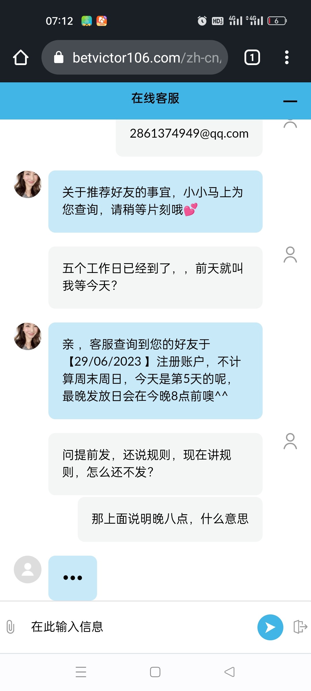 伟德黑台黑288,推荐金赖皮不给一直推脱,客服会话想关就关