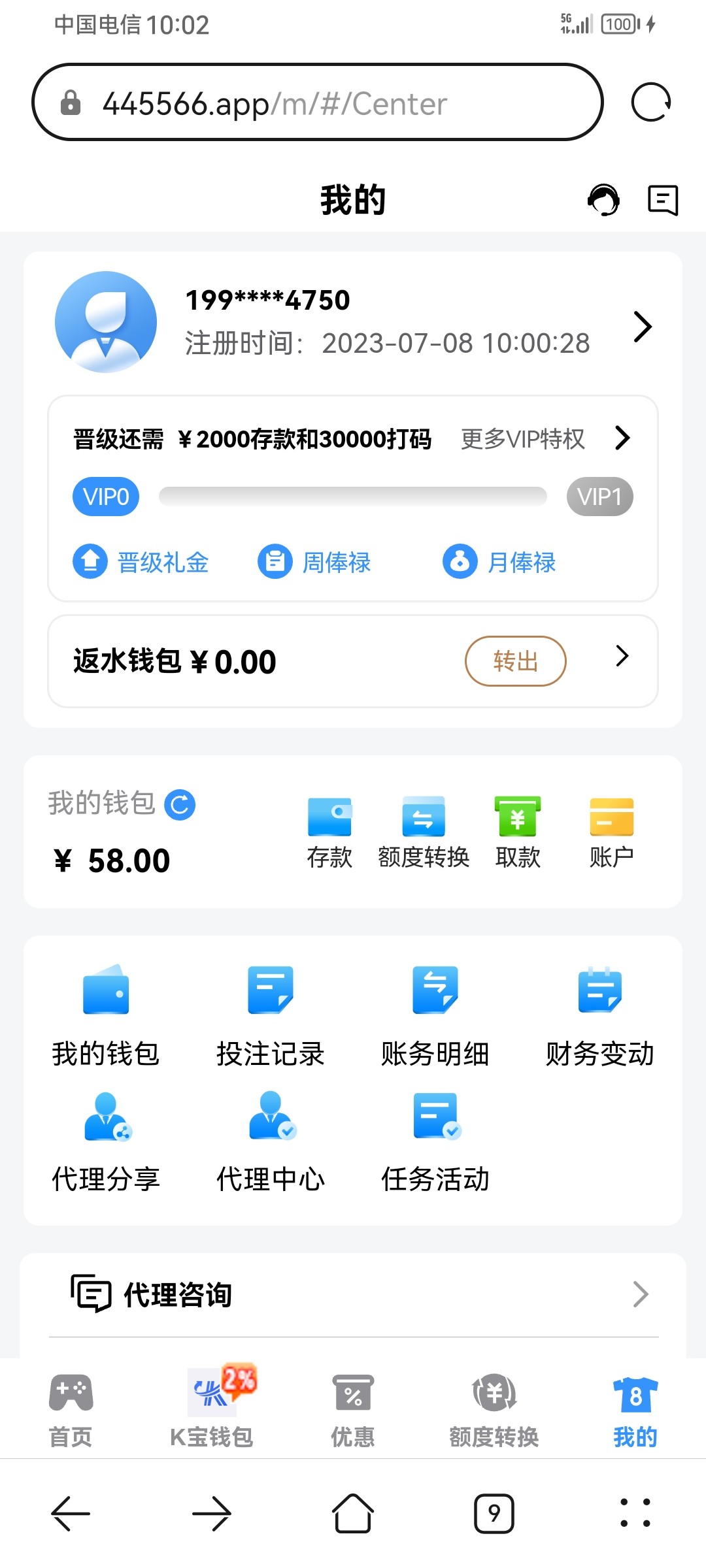 注册送了58