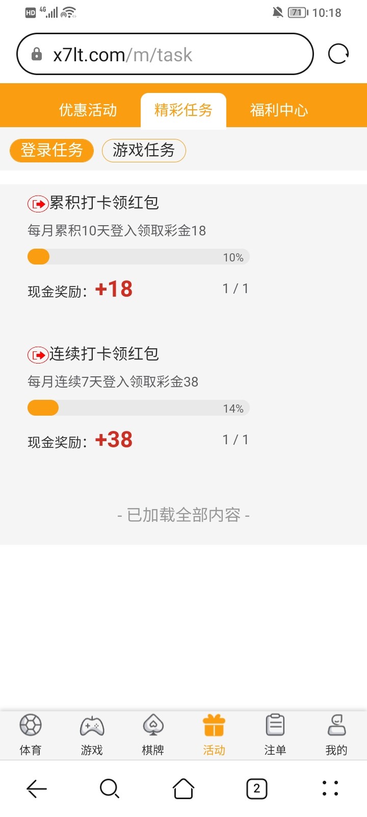 连续登录七天的在福利中心领取38