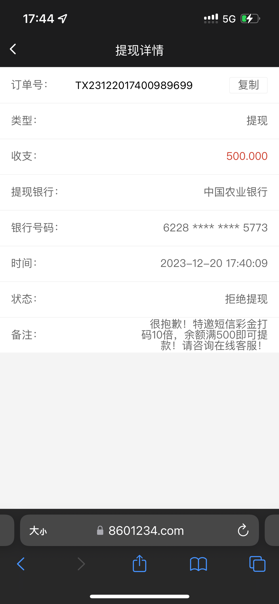 提现到了500,5分钟到