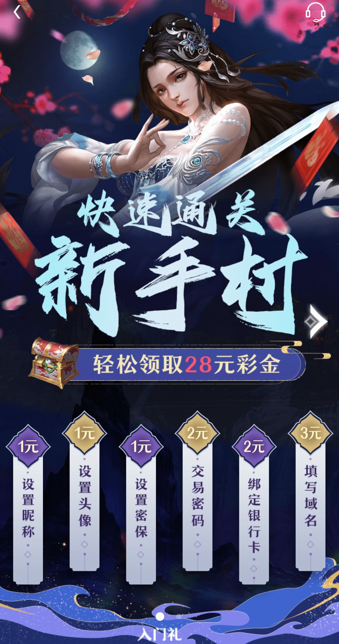 新用户注册活动里新手村自助完善资料秒领取10