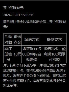 新用户注册绑卡,1小时内自动派送18彩金,出款自测!