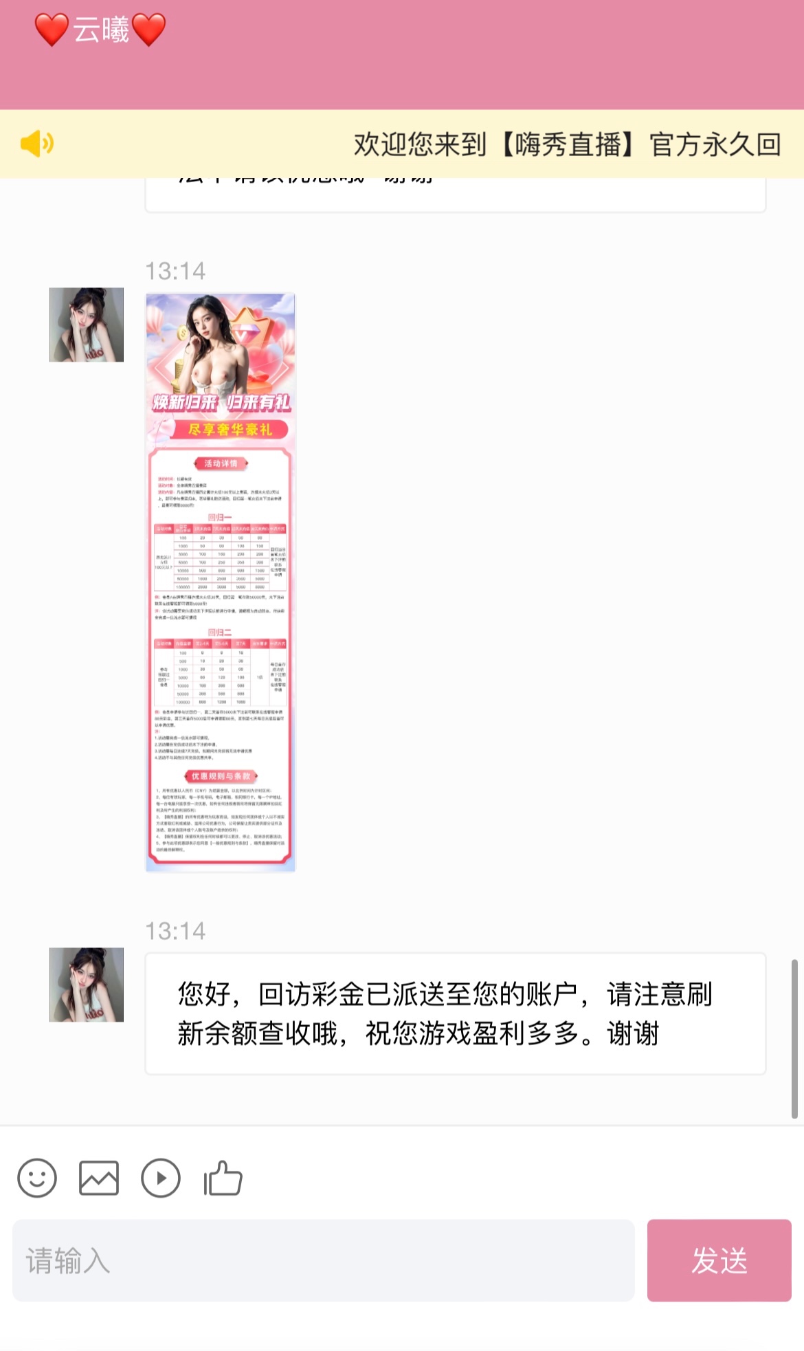 【嗨秀直播】—✅— 回访彩金