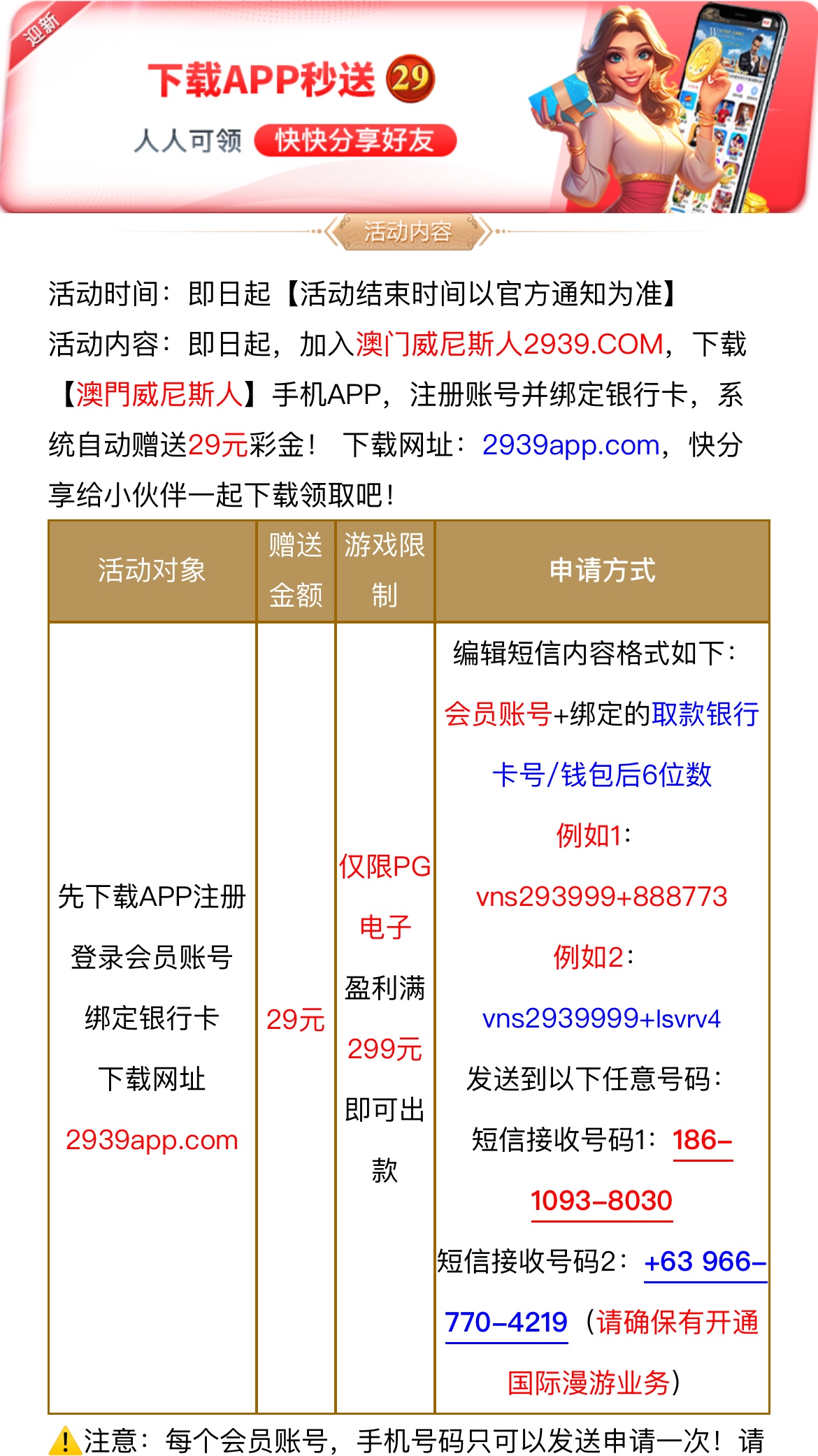 先下载APP注册绑定银行卡,到优惠活动里查看需要发送到手机号的号码,限PG电子盈利满299才能出款