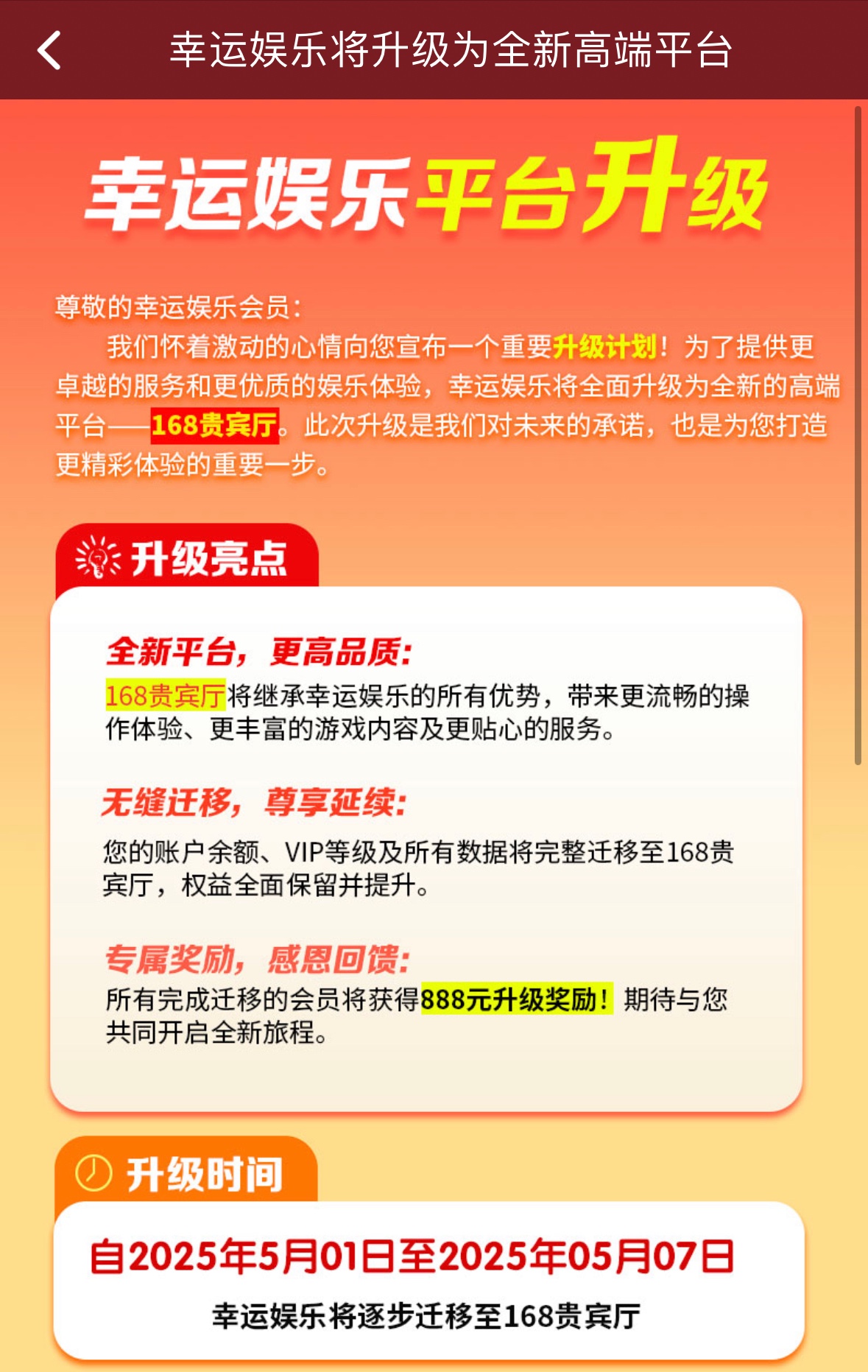 幸运娱乐有号充值过的可以到168贵宾厅领取转移彩金 去168找客服就行 不清楚VIP0能不能领取