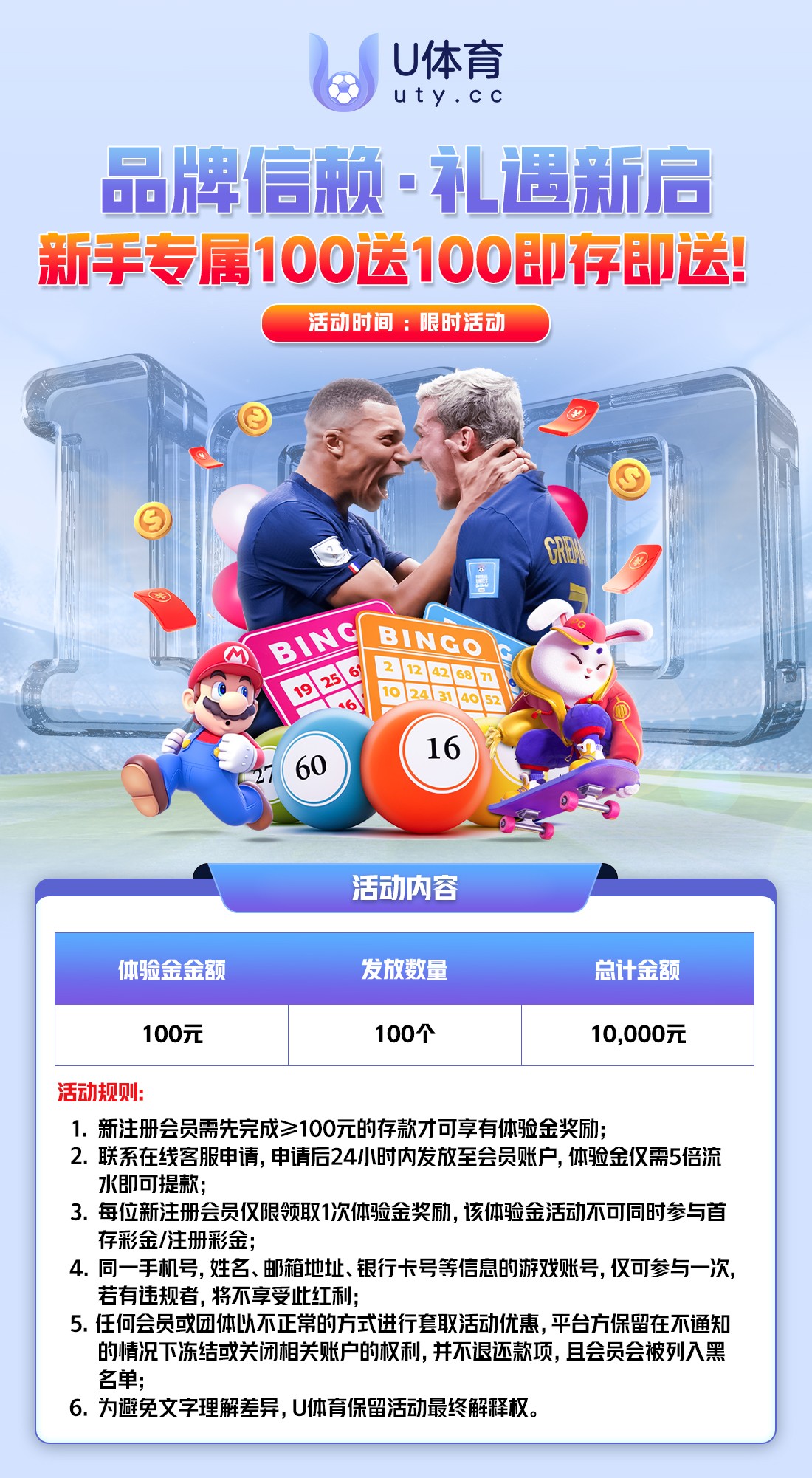 【U体育】—✅—新人100+100