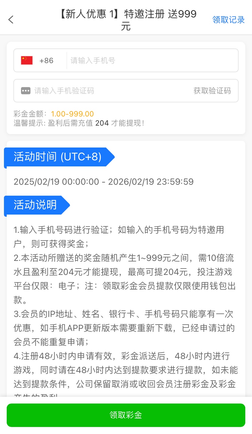 特邀优惠里自助彩金,10倍流水,盈利后需要充值204才能提现最高提现204(左右脑互搏),风险自行承担
