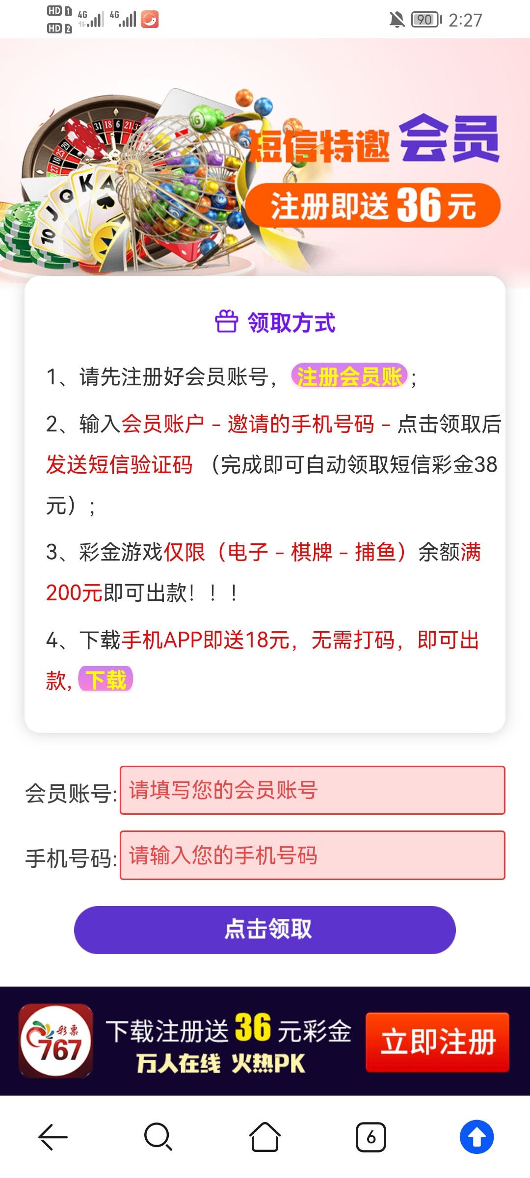 特邀碰瓷,新用户注册好去链接里申请36,限制电子/棋牌/捕鱼,最低200提现。新出的估计没多少人有,等一段时间就行了,有空就去看。