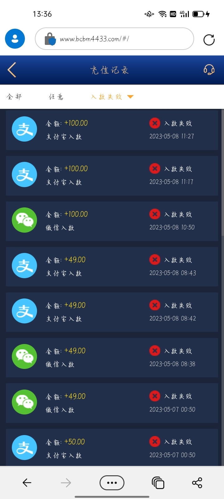 我能说有点假吗?间隔一秒入款?你点充值不付款那能不失败,第一次入款失败台子的原因,充值不到账还冲就是人的原因了