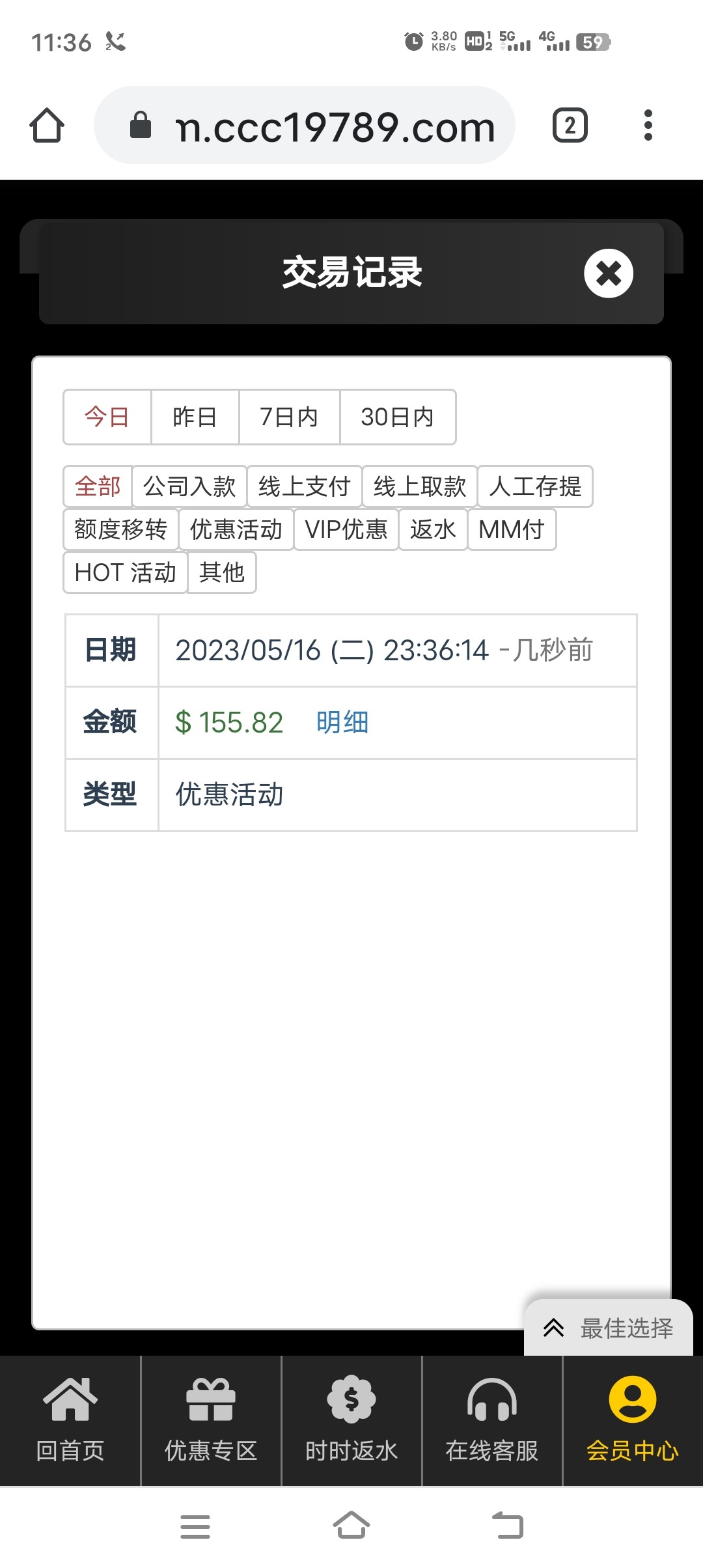 回馈五块上到八十上不去了 又充值了八十提了300到账