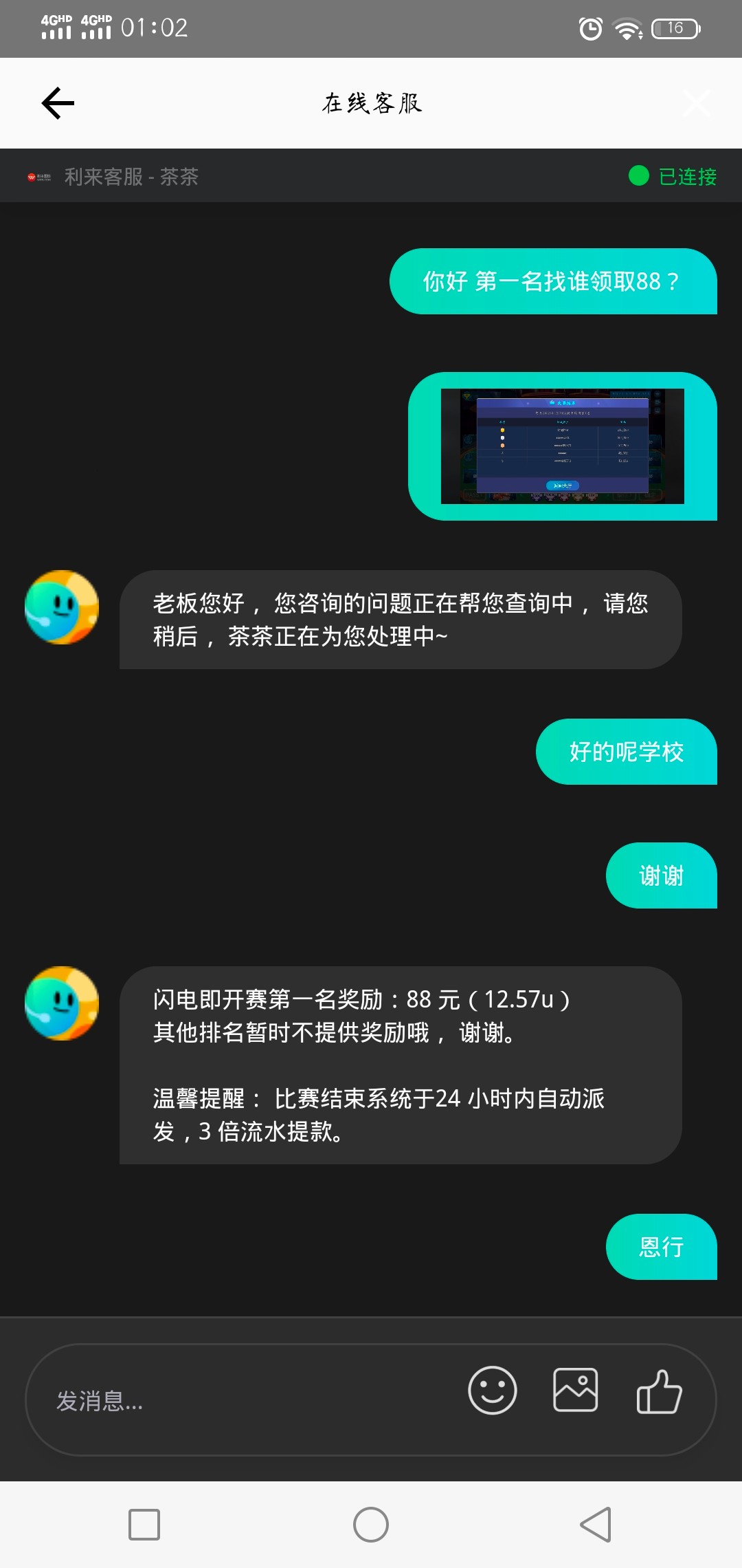 彩金24小时内到账 一般都要十几个小时 明天登上去就有了