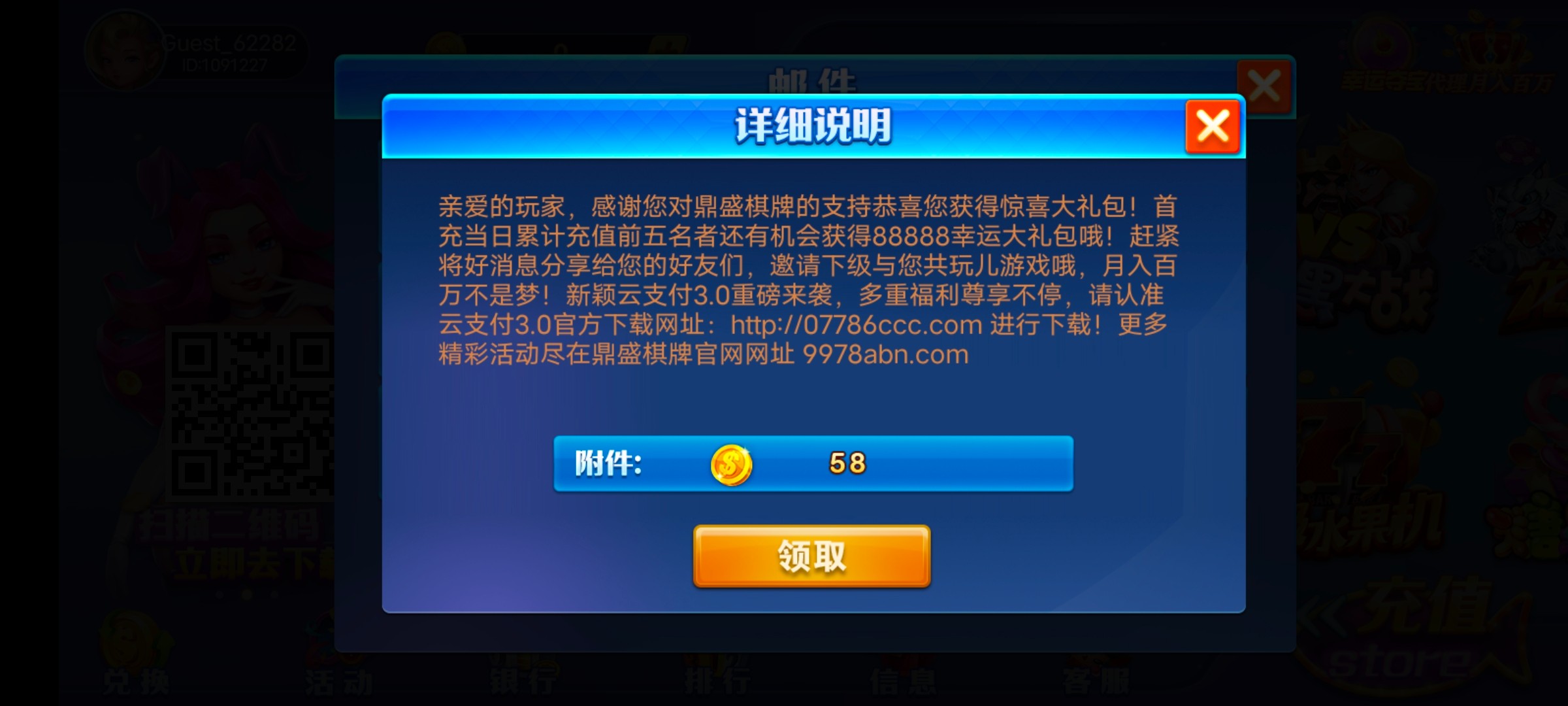 这个就是之前的大满贯棋牌,后面改名叫鼎盛了,之前佣金一万多,后来没玩过卸载了,今天登上去佣金还有一千多,不知道啥时候的返利。