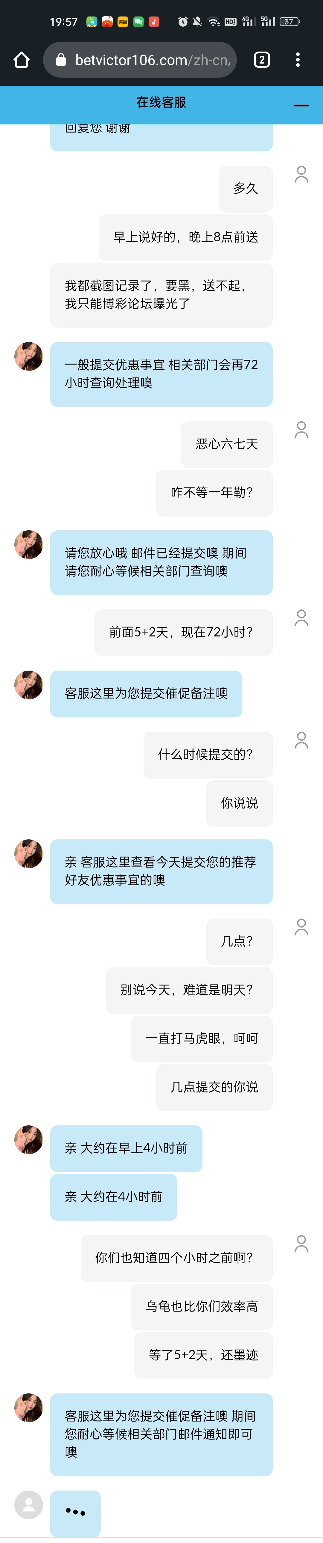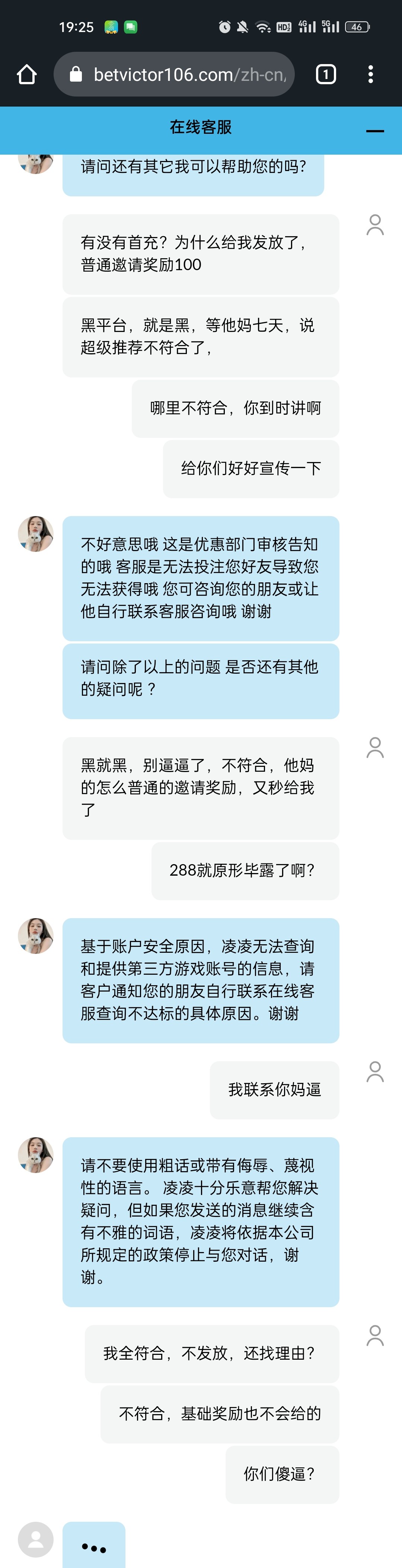 伟德黑台黑288,推荐金赖皮不给一直推脱,客服会话想关就关